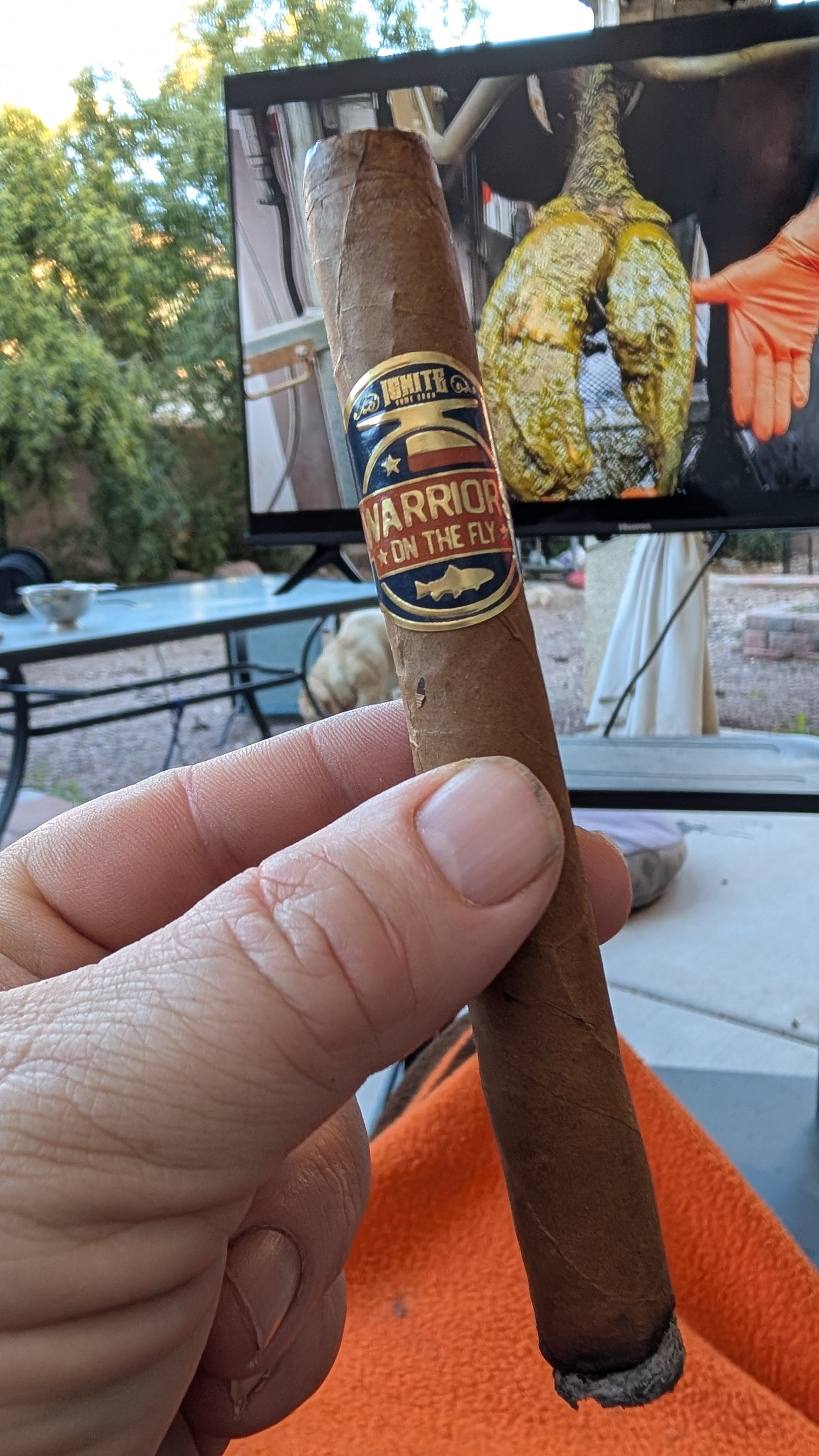 a rubusto with a wide blue ribbon foot band9 -
