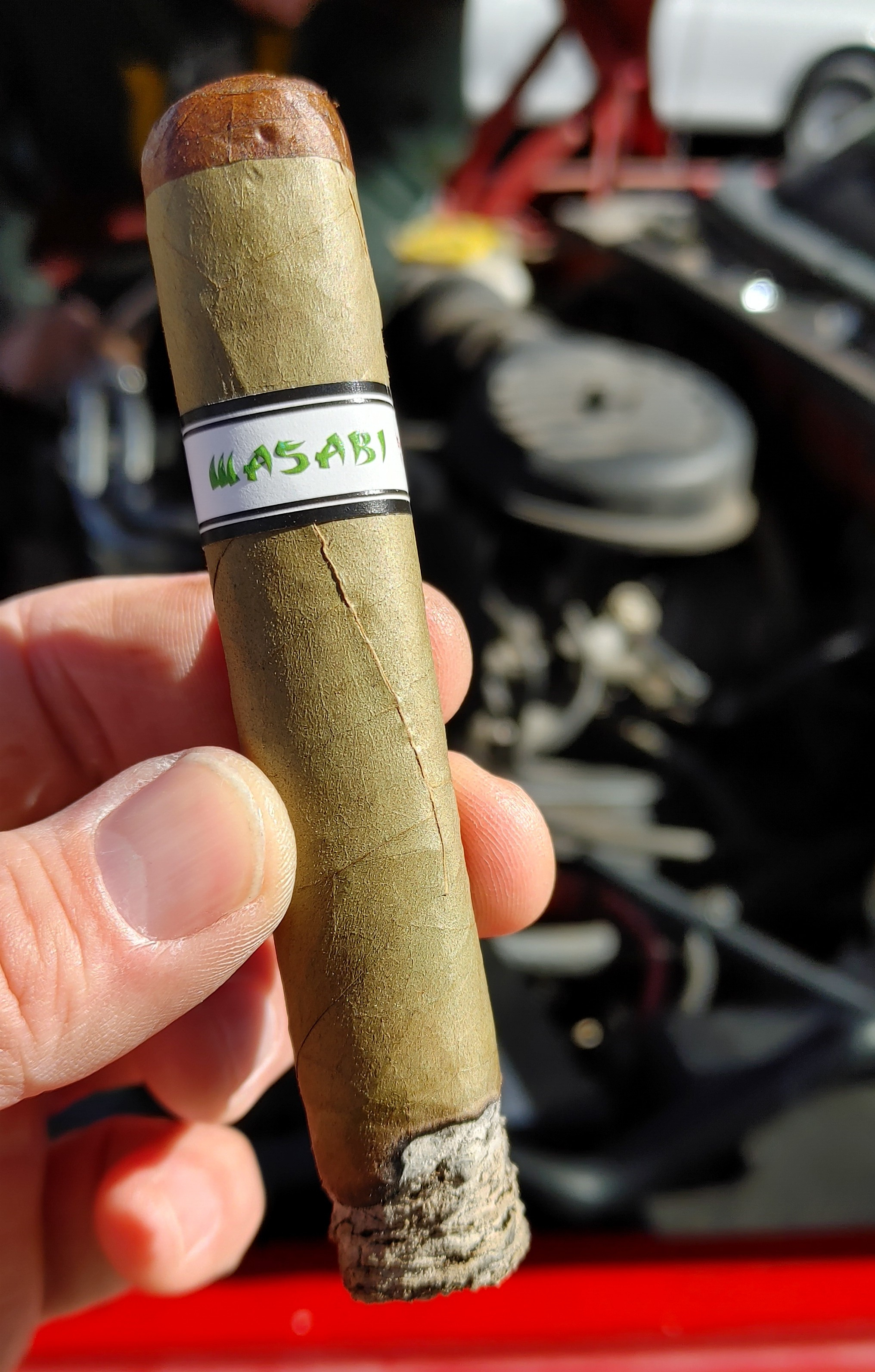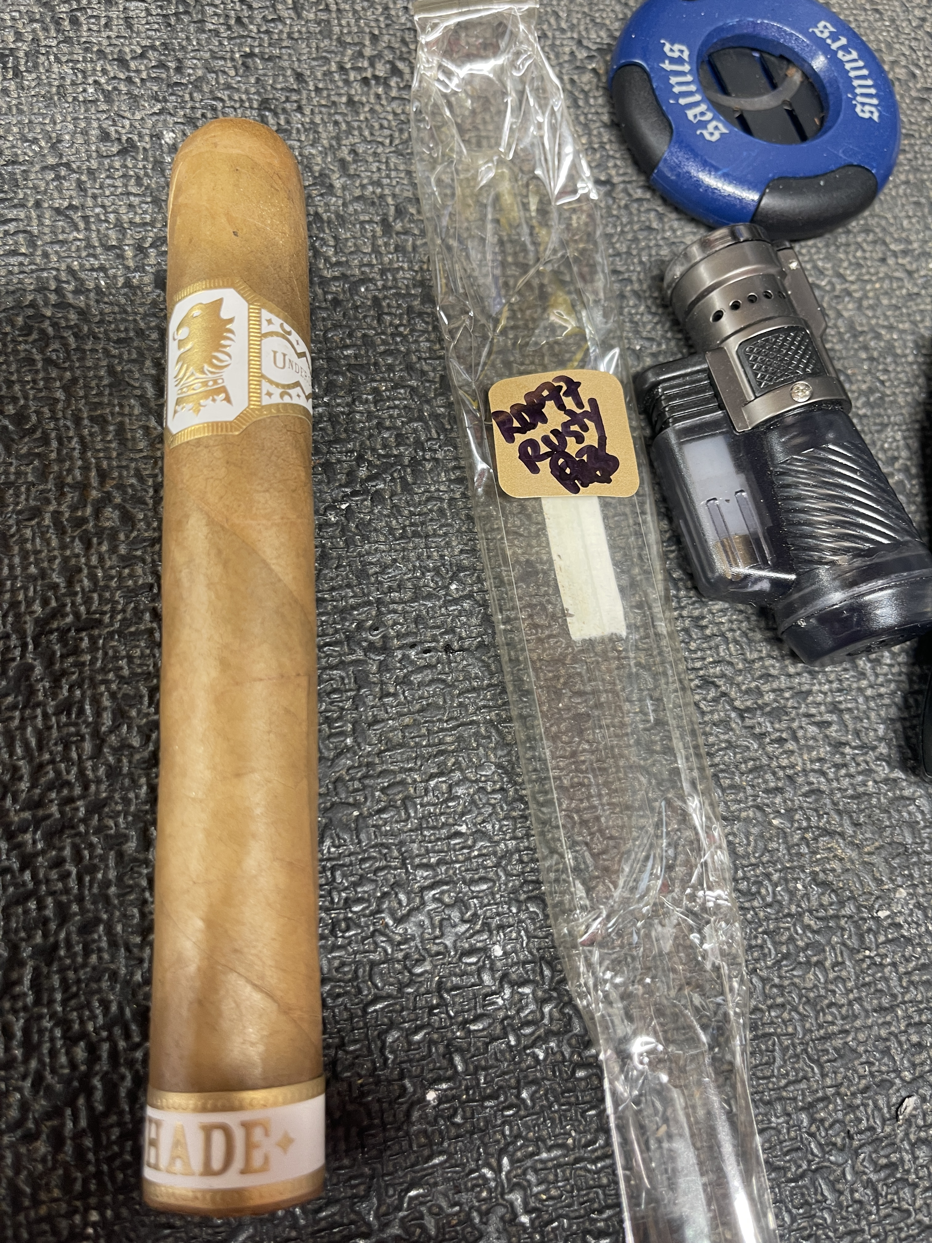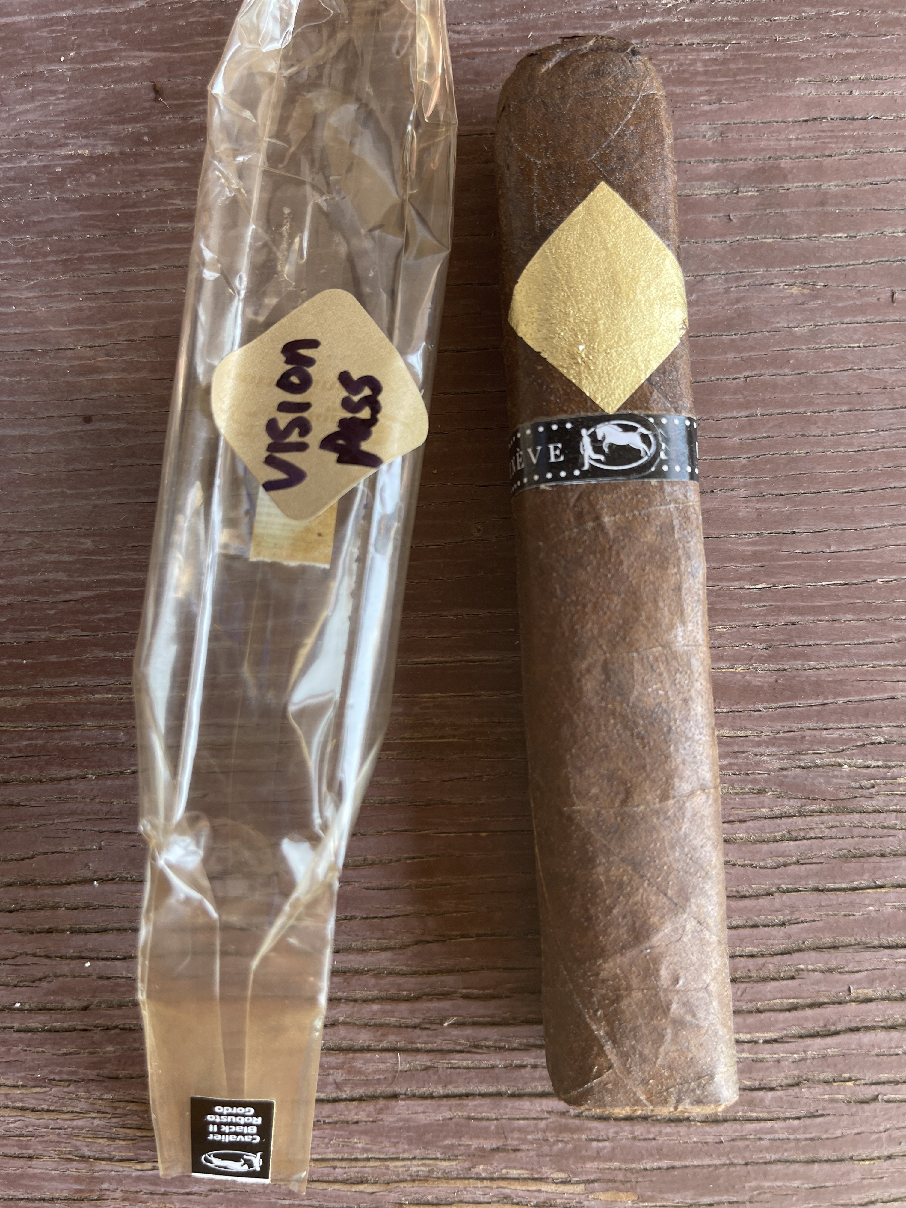 Picked out a yard gar for the mow. Nice dark cello, interesting that the wrapper is darker where the band was and lighter where it was in contact with the cellophane.