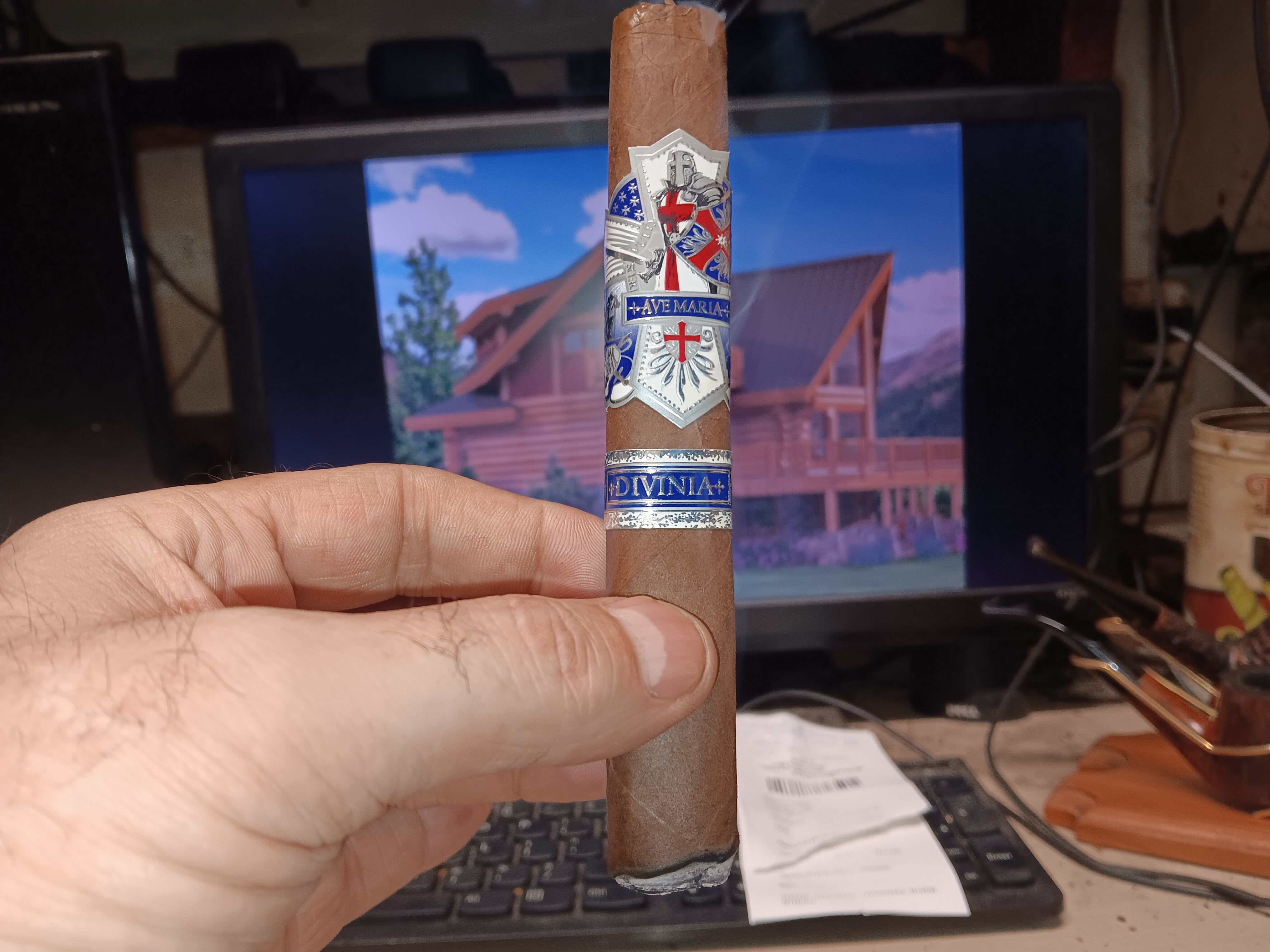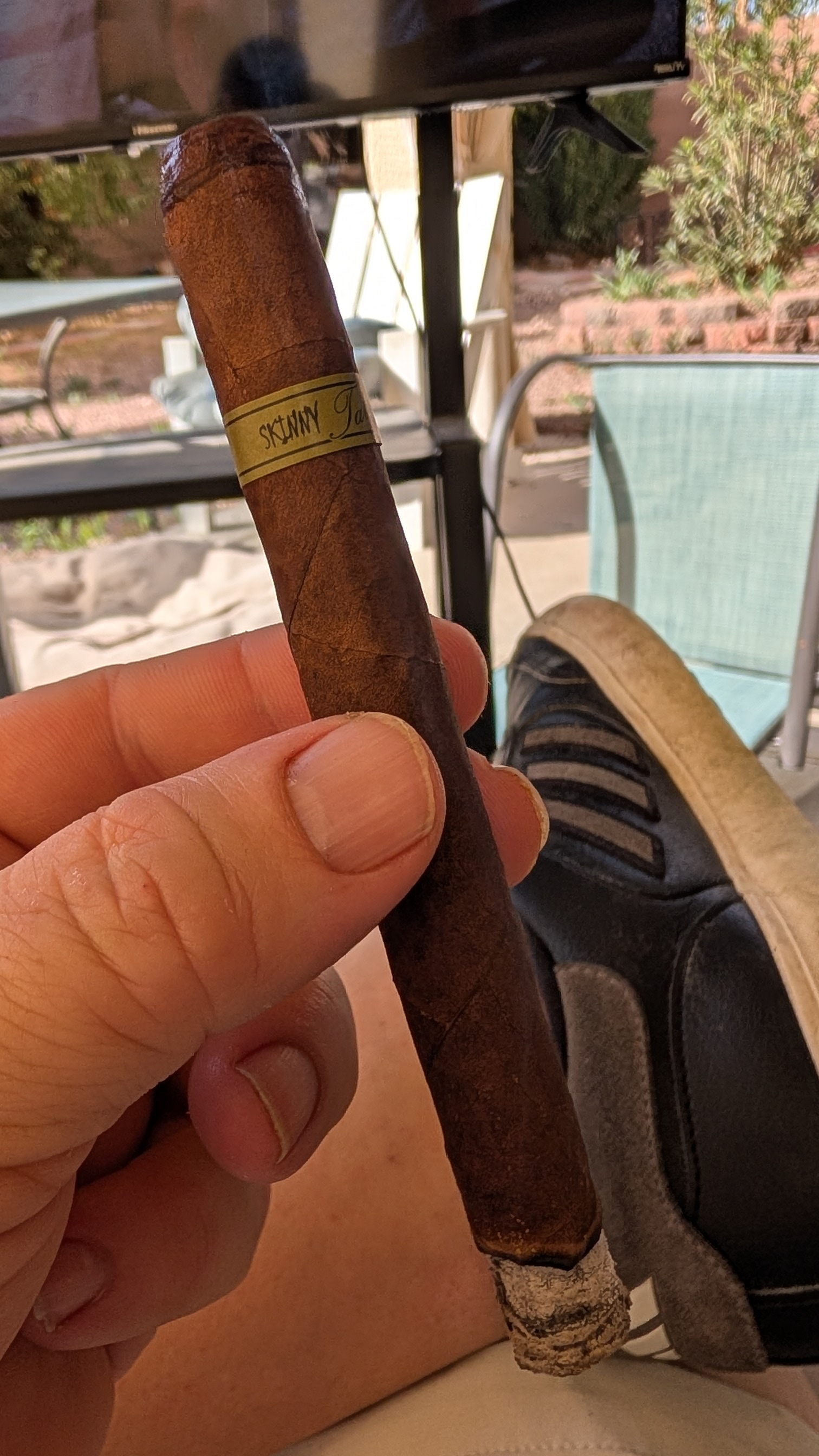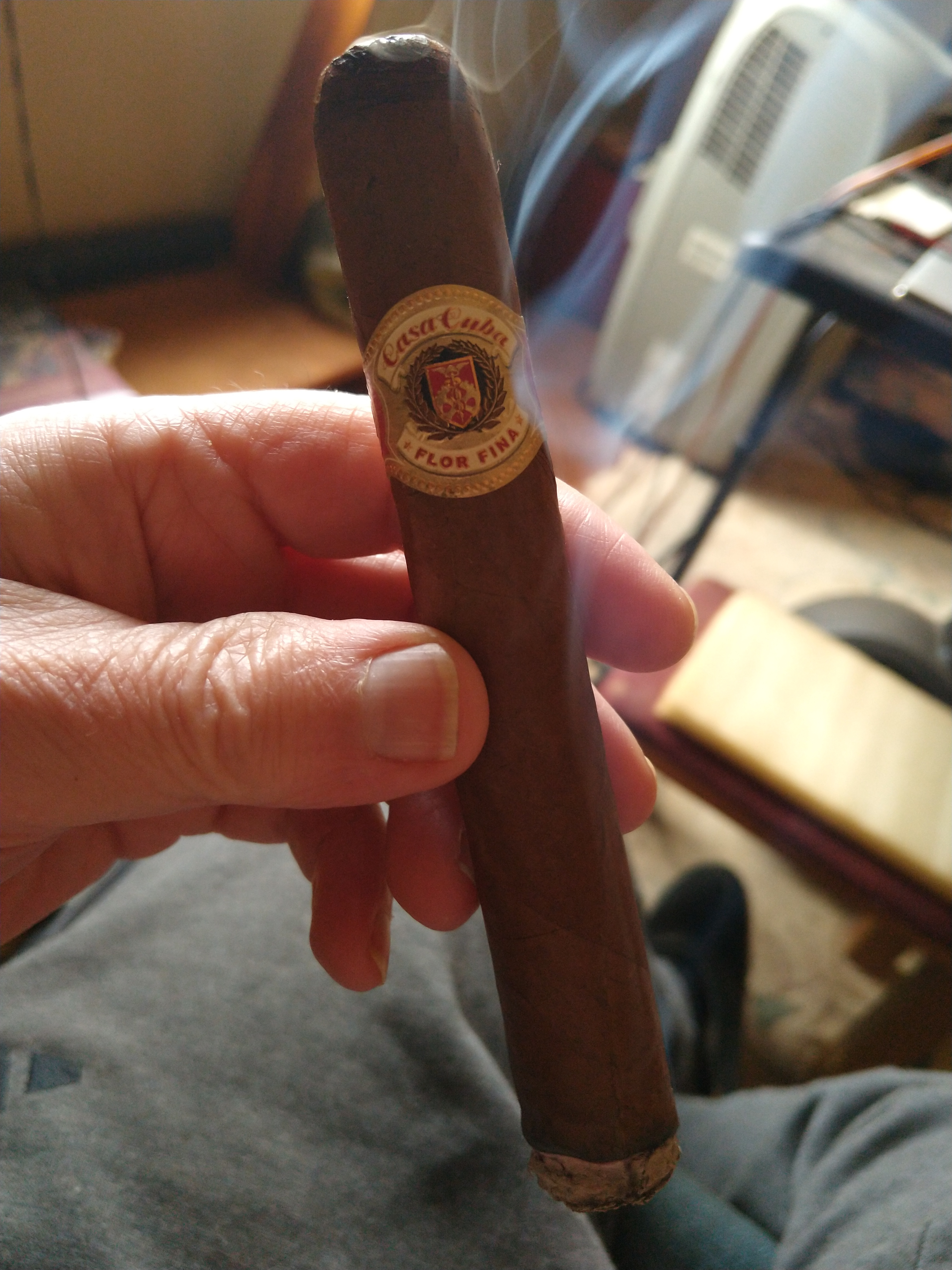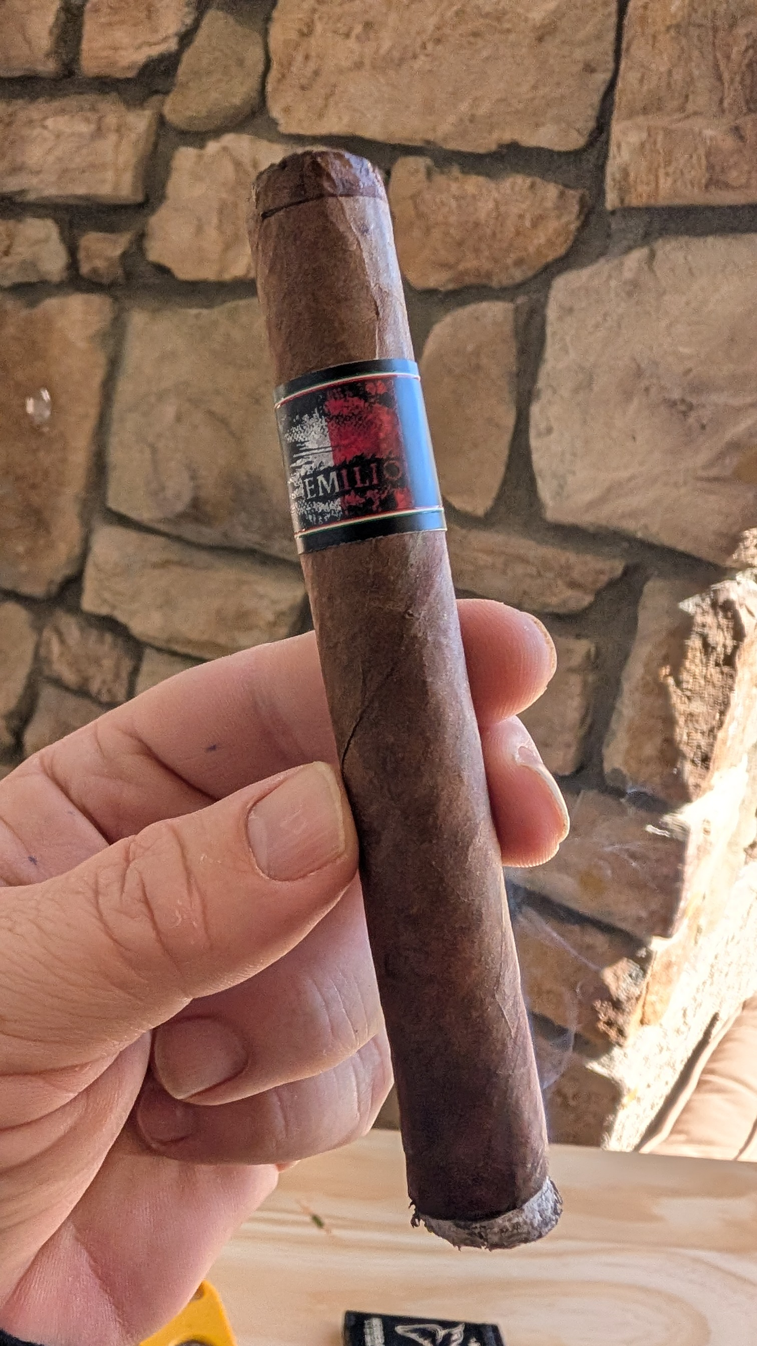 Picked out a yard gar for the mow. Nice dark cello, interesting that the wrapper is darker where the band was and lighter where it was in contact with the cellophane.