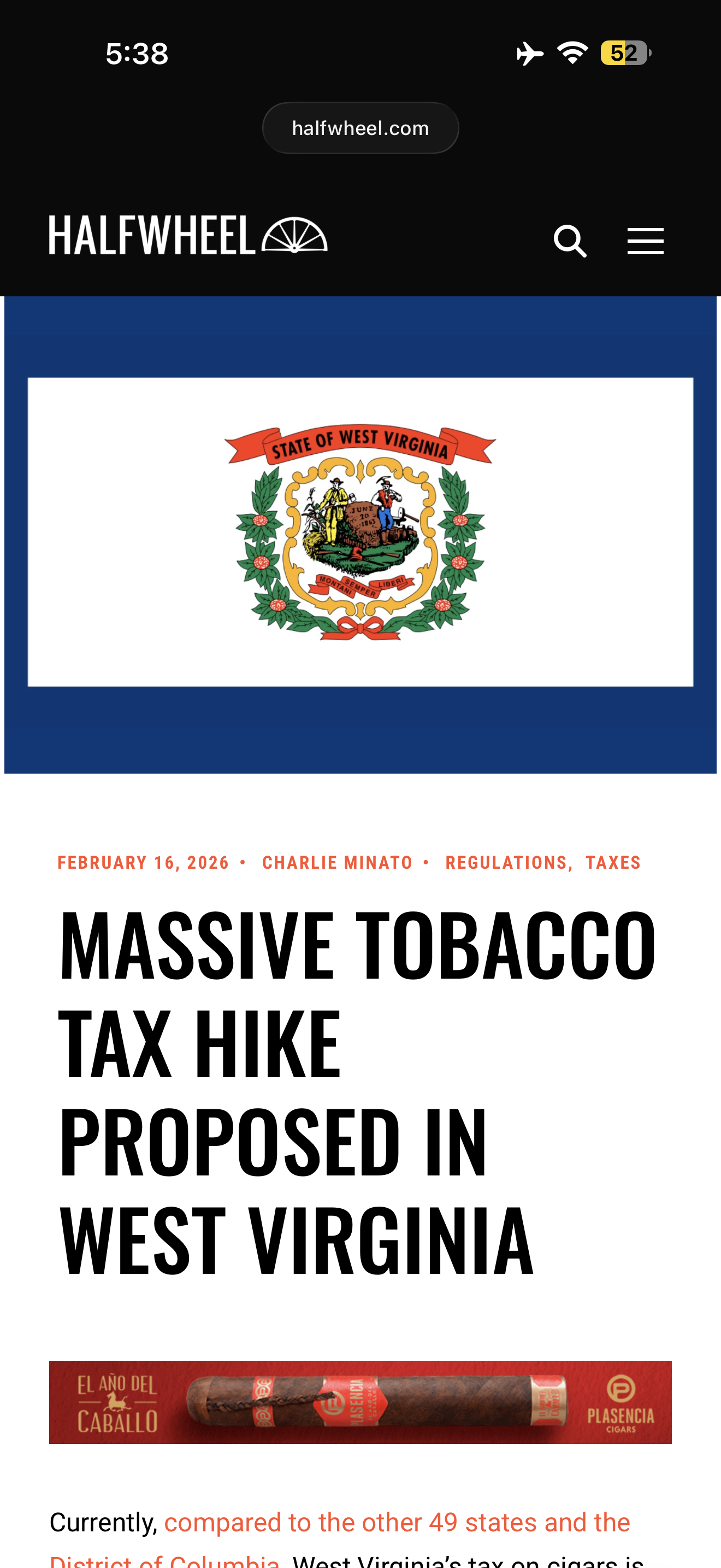 So, Nevada is tacking on a little over $4 to the price of a $10 cigar?It's a 30% of wholesale is what it says. That's what our cigar tax used to be, but we changed last year to a $0.50 cap... If they wanted to make remote sales in line with local sales, then it should be a $0.50 cap.