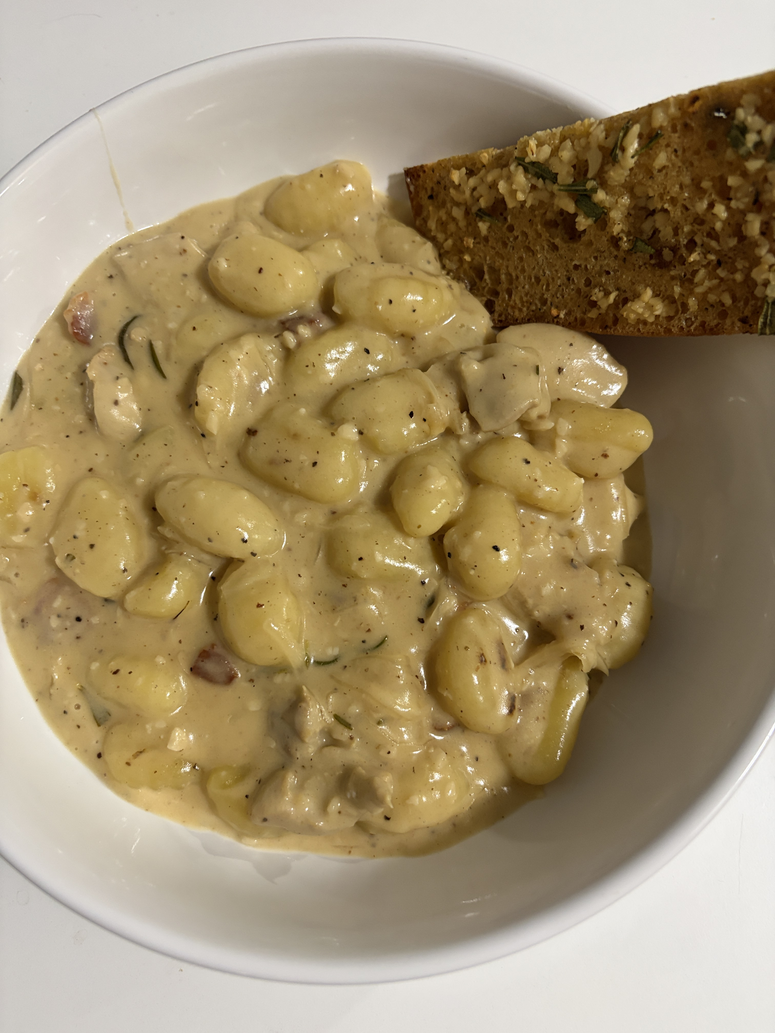 Garlic and rosemary infused olive oil, with a stupid amount of garlic