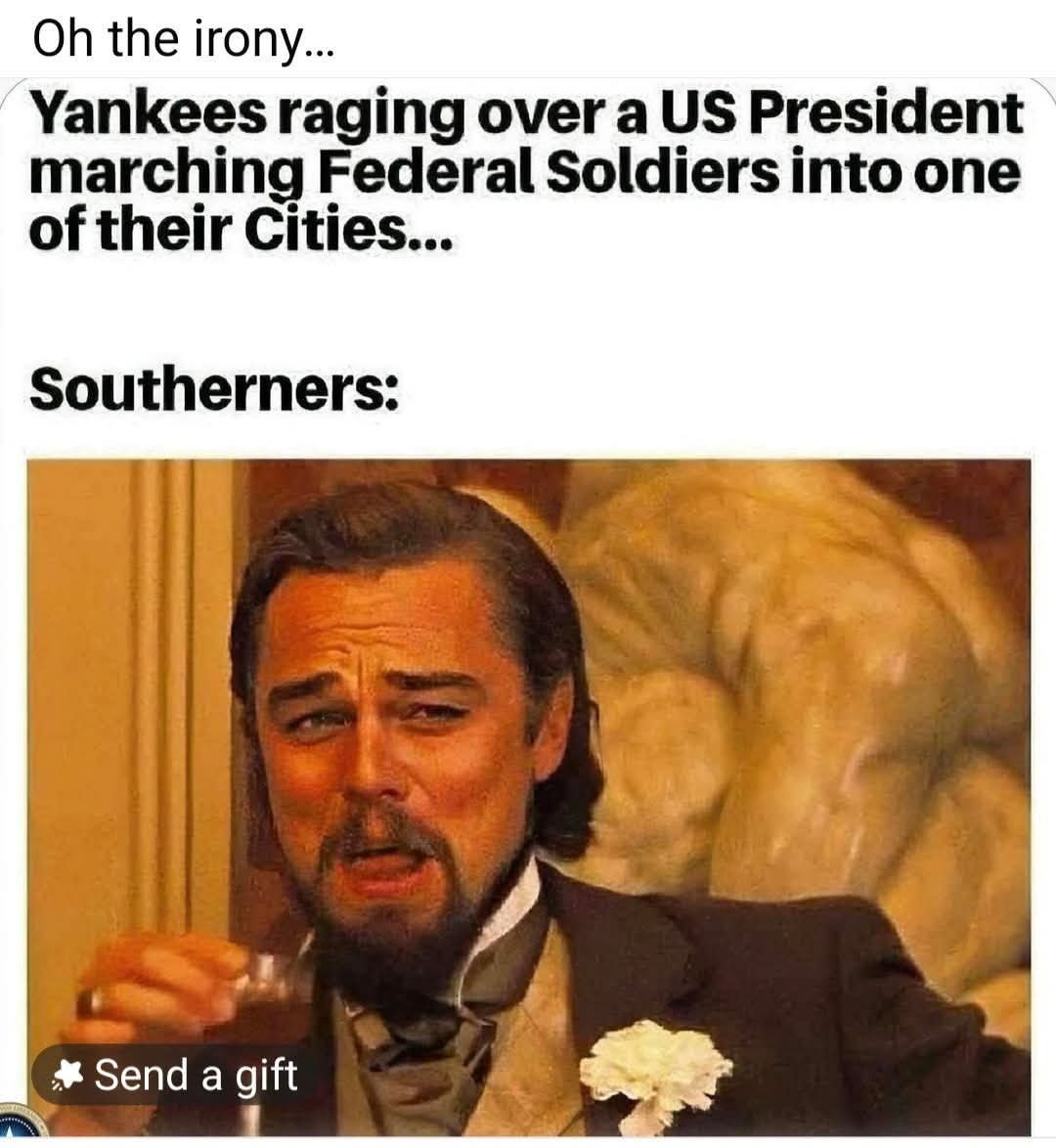 I think he is doing everything he can to piss off blue states in order to justify invoking the insurrection act and extend his power beyond the reach of the Constitution, the Judiciary, and the House and Senate.