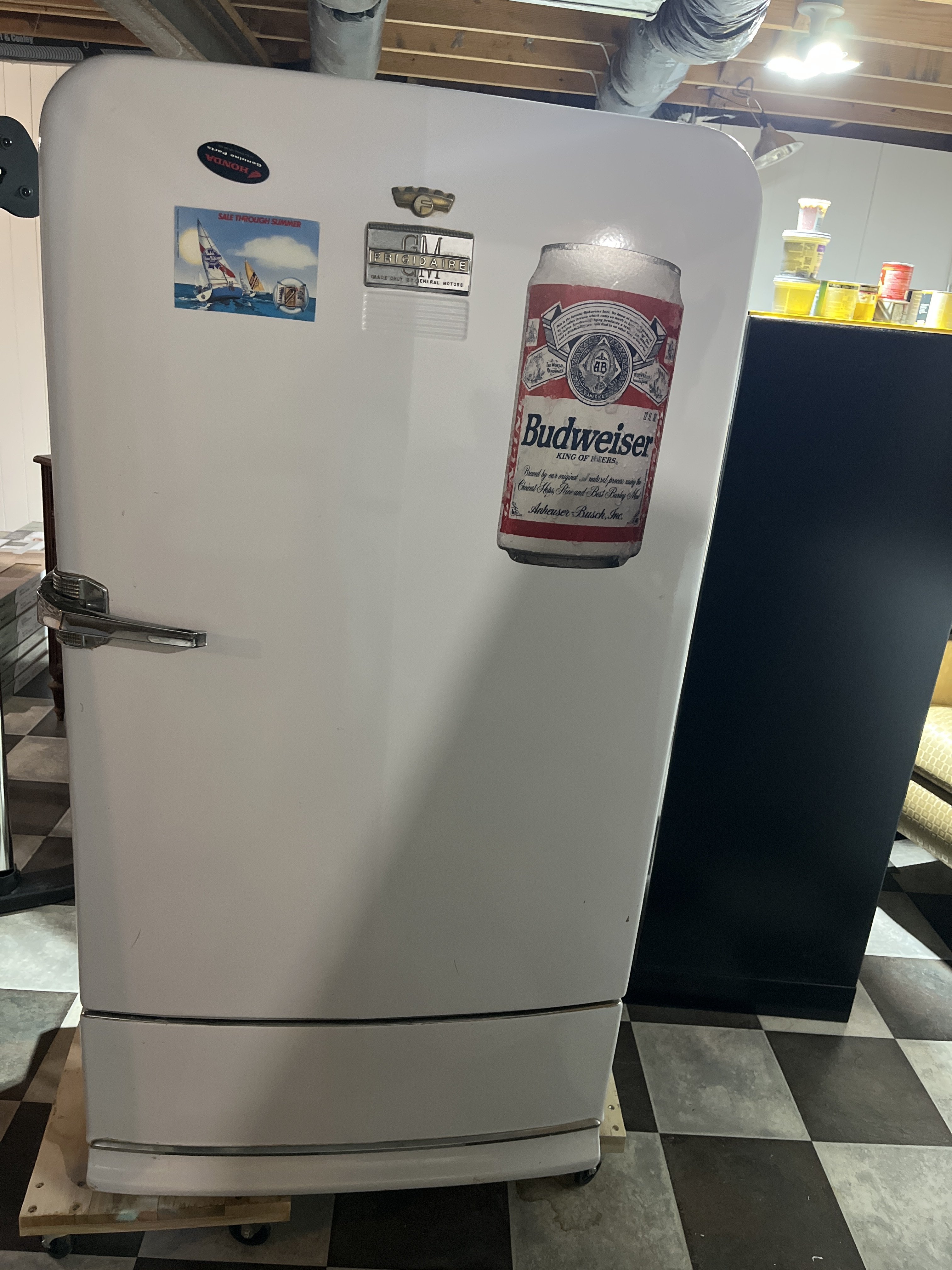 We paid $15 for our first used refrigerator in 1989. It was probably vintage 1960. We painted it Coca-Cola red. Our kitchen was white, black, and red, like a 50's diner.