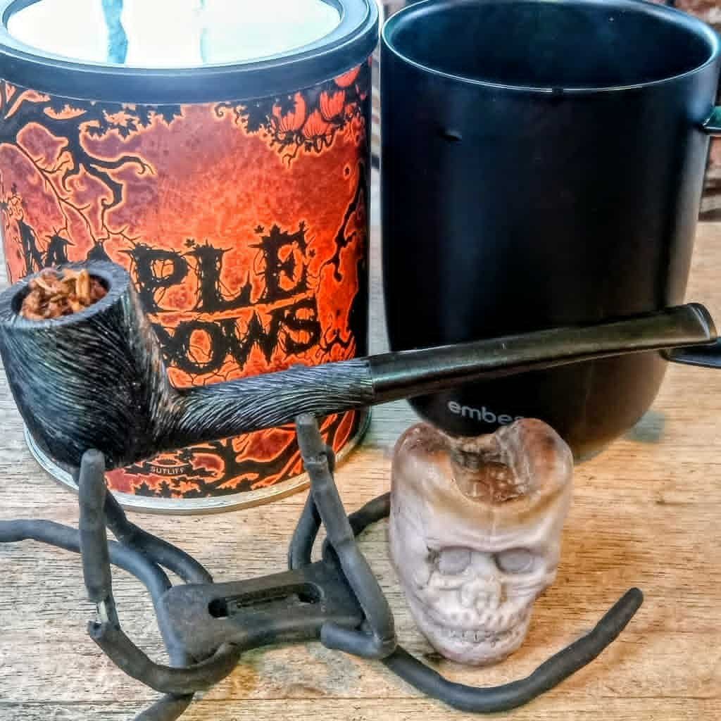 Good morning everyone, Maple Shadows in my Talbert Pipes Ligne Bretagne Long Billiard with Raven's Wing rustication paired with Peru Cajamarca coffee.