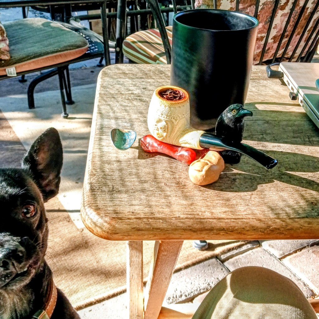 Finished last night pipe, now having Prince Albert in a small cob, with coffee.