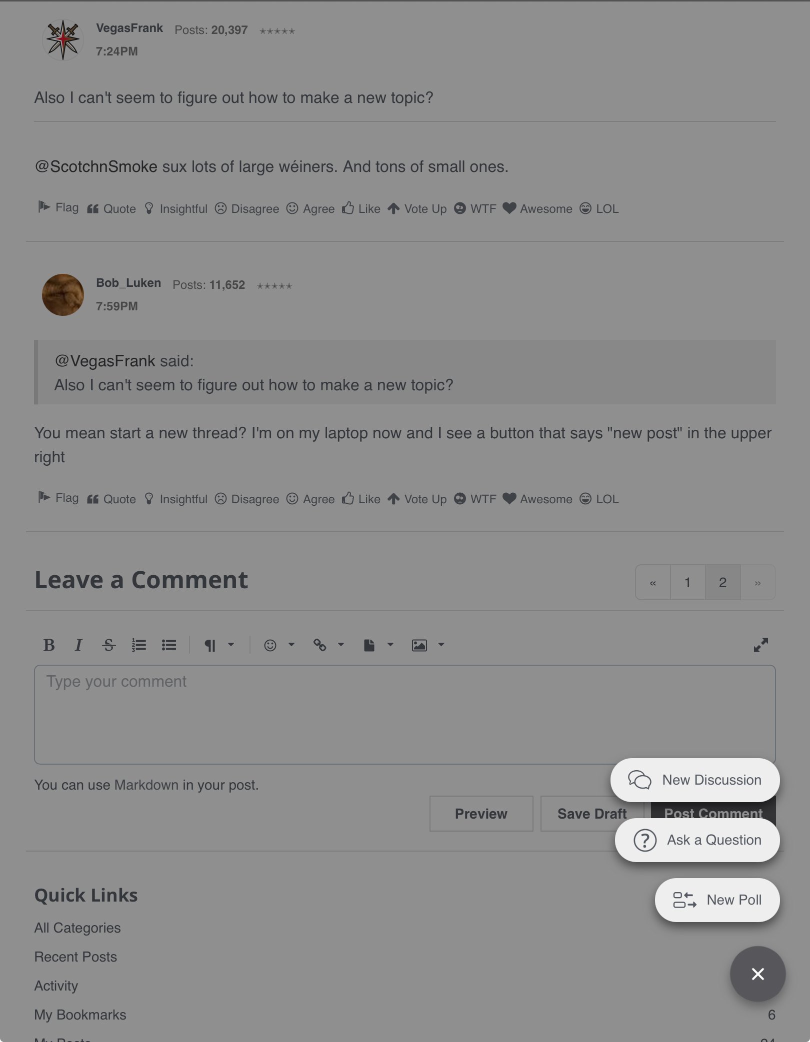 The way it goes to the bottom of the page when I click on a thread is gonna drive me nuts. Okay, drive me nuttier. You get the idea. Is that happening for everyone?
