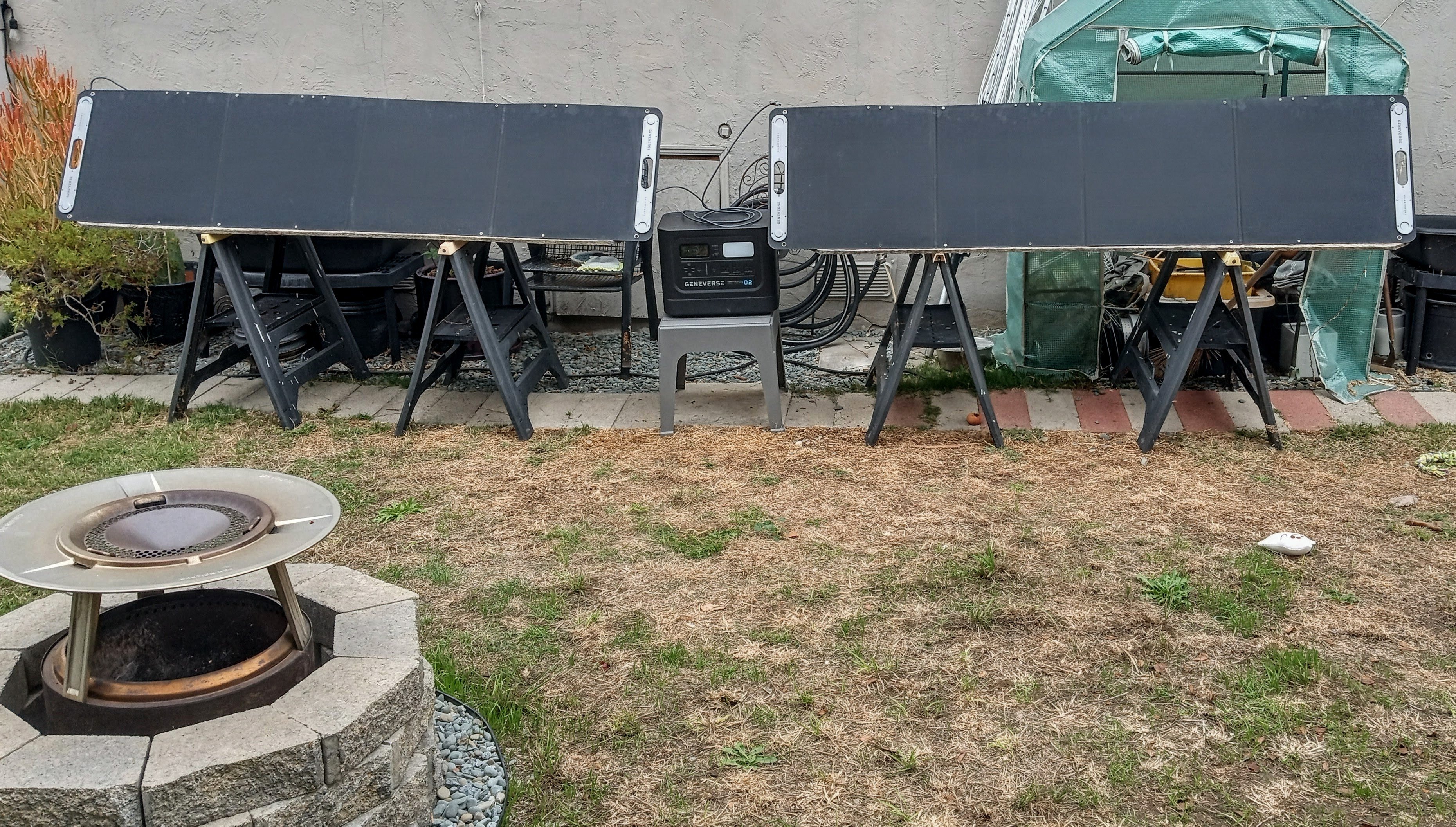 I finished charging my solar generators / power banks today, but it took me several days to charge the large one because of weather and the fact that the sun is lower in the sky now and there's fences and trees blocking the path. The sawhorses and boards helped get it done. I also got the apps installed for my two power banks and was able to set limits for charging / discharging which should help with long-term battery life.