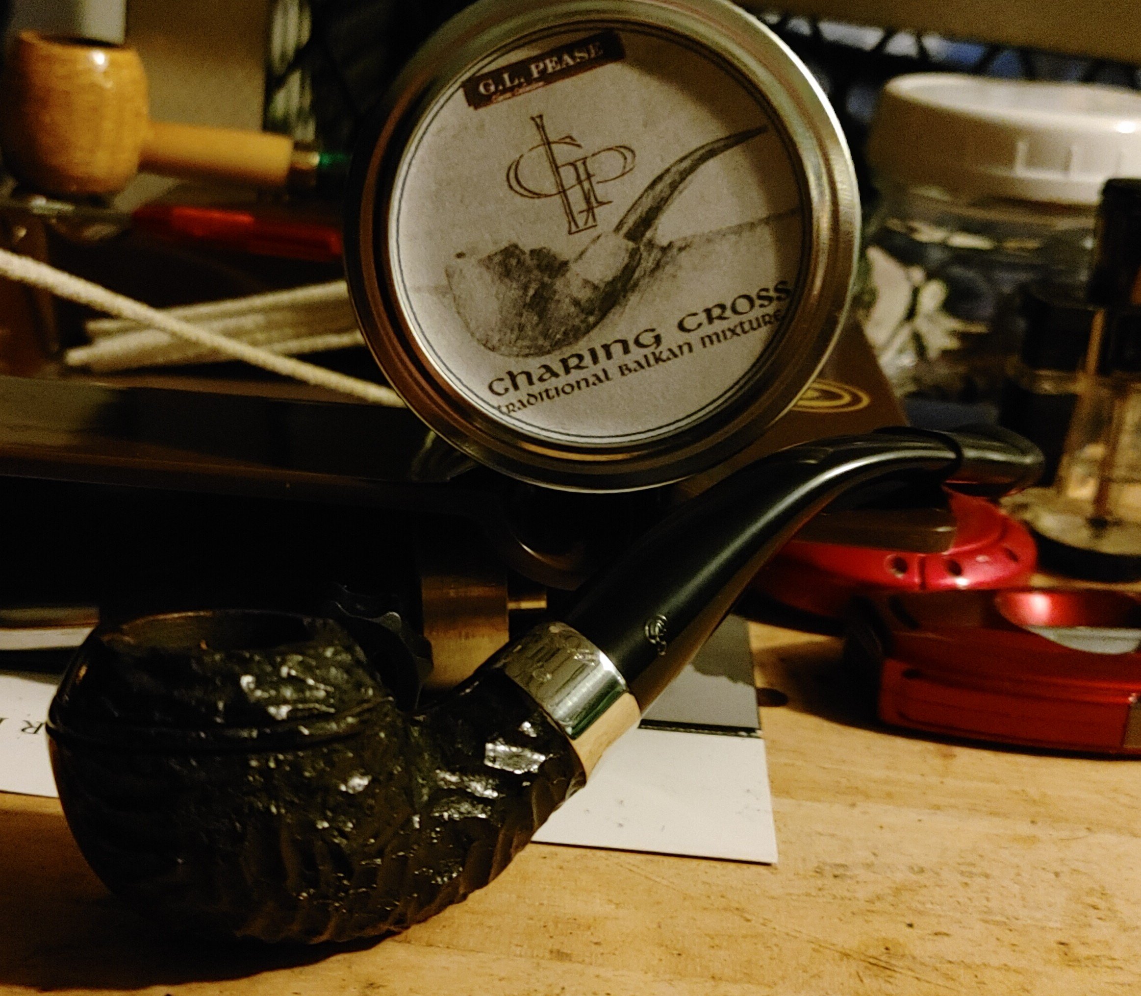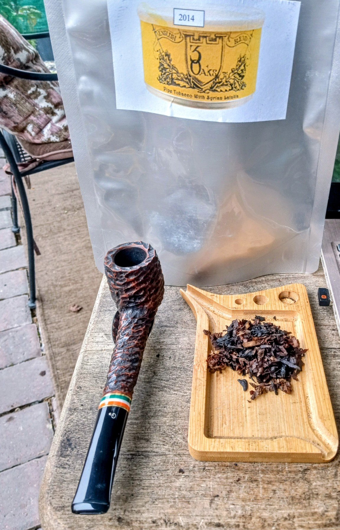 Enjoying some 2014 3 Oaks Syrian in my Peterson 2023 St. Patrick's pipe shape number 264 between service calls from the Wife to install a printer on a laptop and change the printer ink. Paired with a nice washed coffee from Ethiopia.