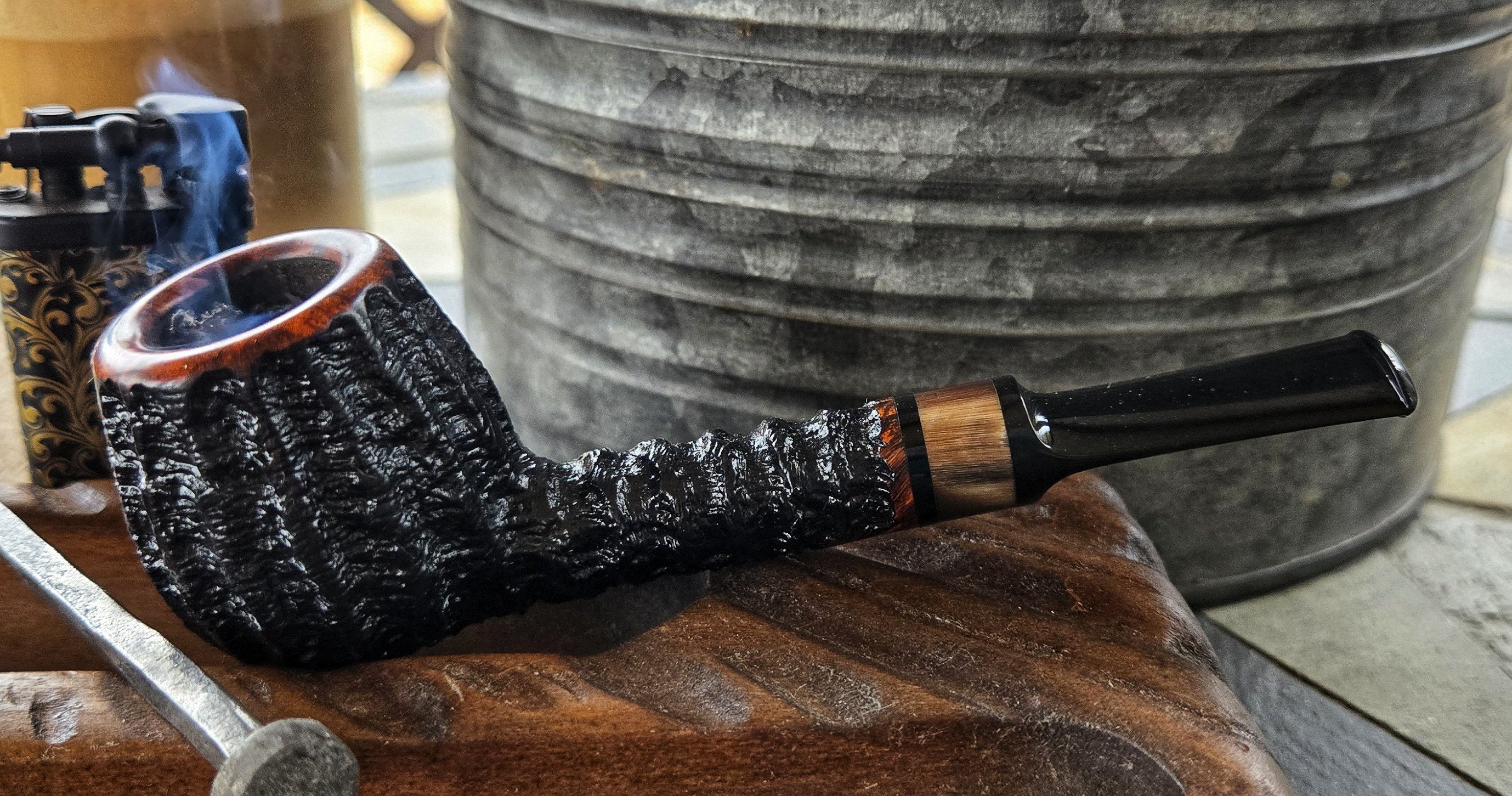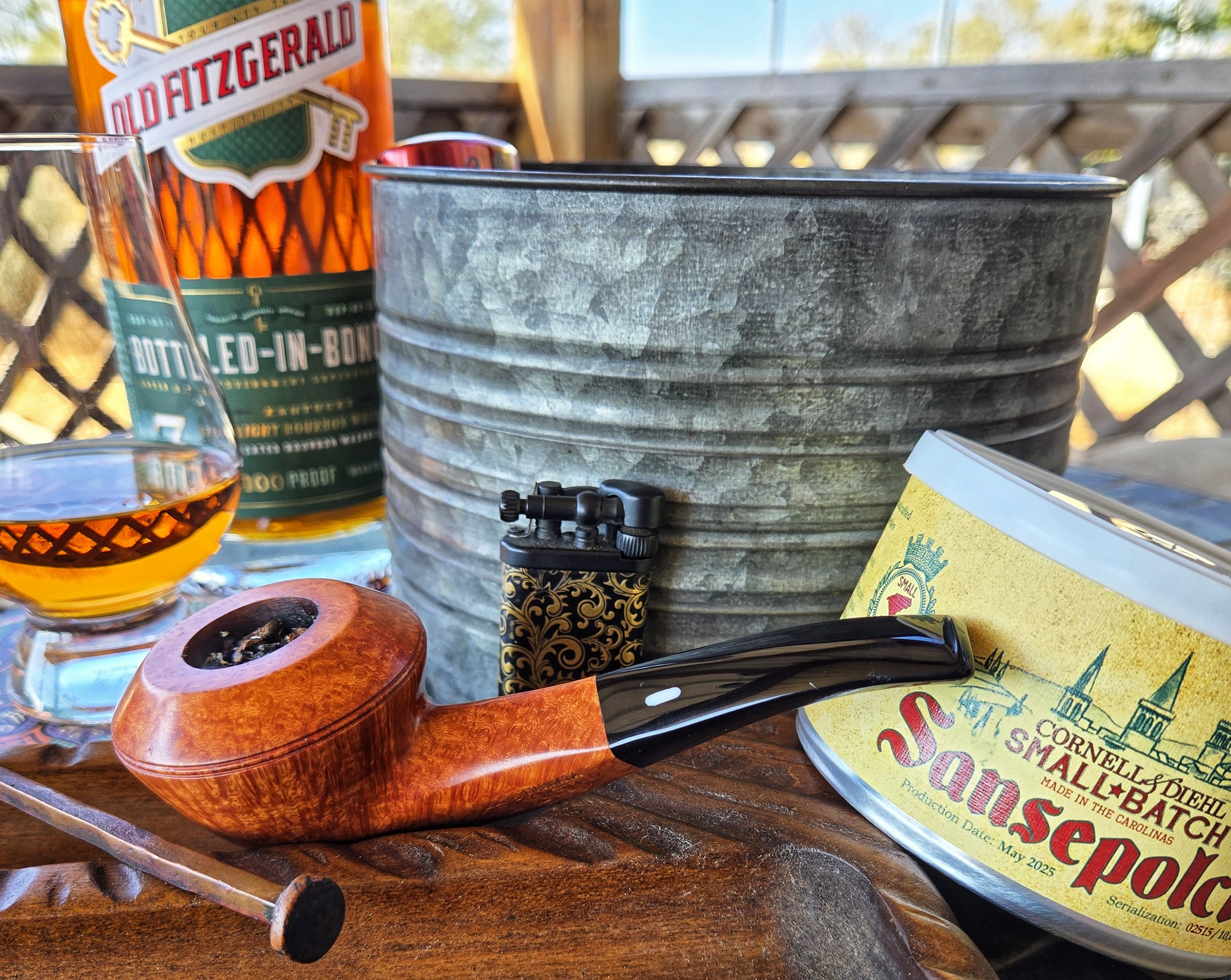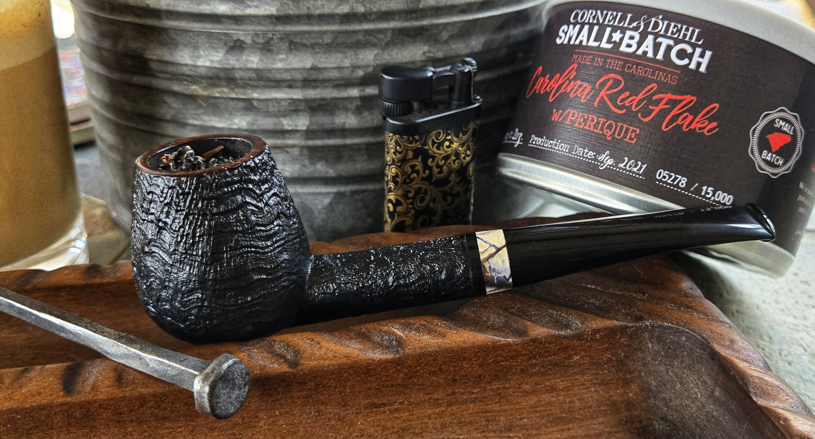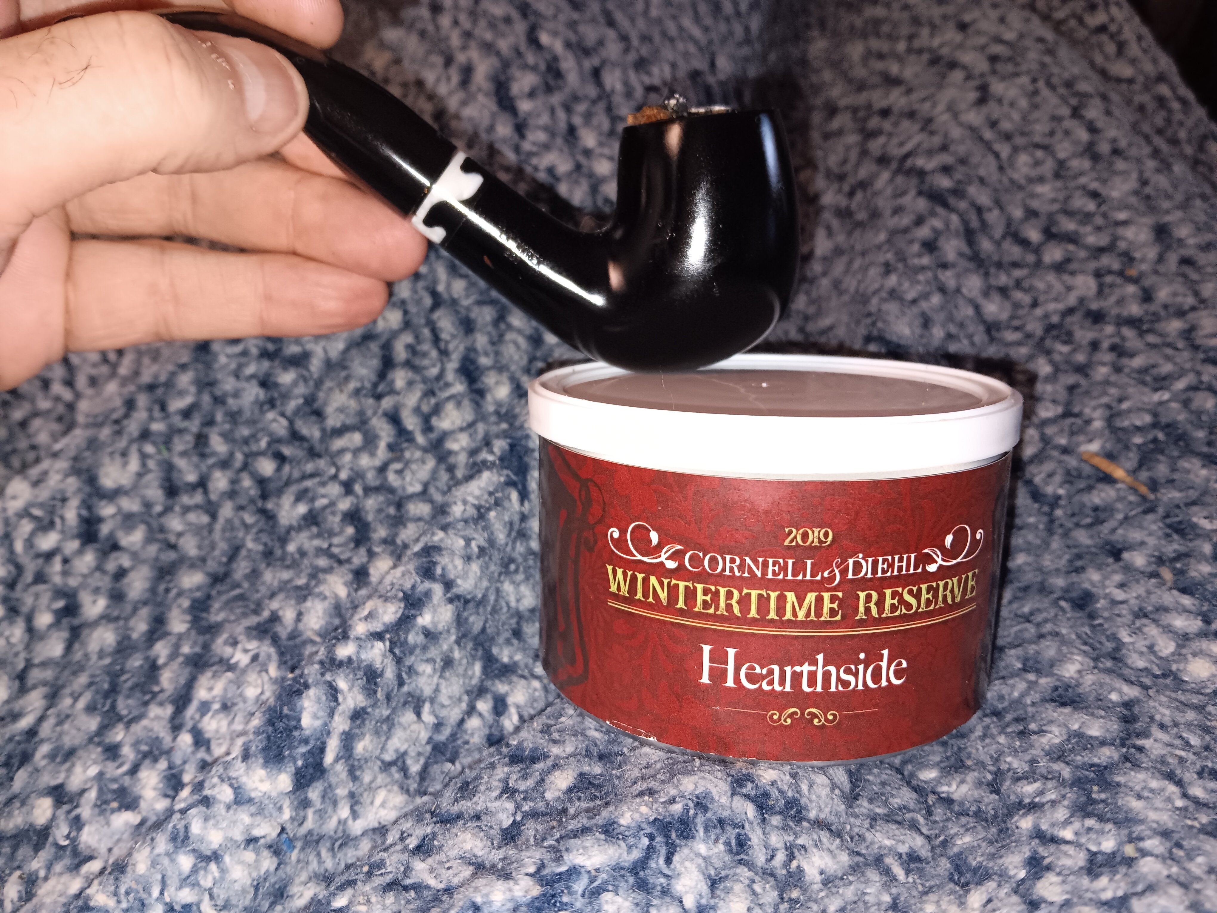 Having some tobacco compliments of @Hawks in a pipe compliments of @Rdp77 . I almost opened this can last night but decided not to stay up late. Thought about it all day at work. The tin was puffed up, fermenting since 2019. When I popped the top it gave out a loud hiss that brought herfcat running. Thank you very much, Chris. I'm not much of and English fan but these crossover type englishes are pretty good.